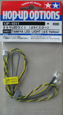 Tamiya LED Light (Diameter 5mm Yellow) #54011Connect to the TLU-01 LED Light Unit. Yellow color is perfect for replicating fog lamps.New in original Tamiya package. Only for use with LED Light Unit TLU-01. Not for use with 1/14 Electric R/C Tractor Truck series.